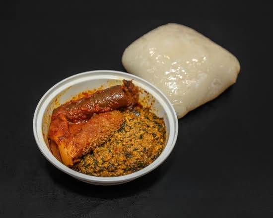 Smooth, fluffy poundo yams served with flavorful soup and a mix of tender, seasoned meats. A rich and authentic taste of Nigeria.